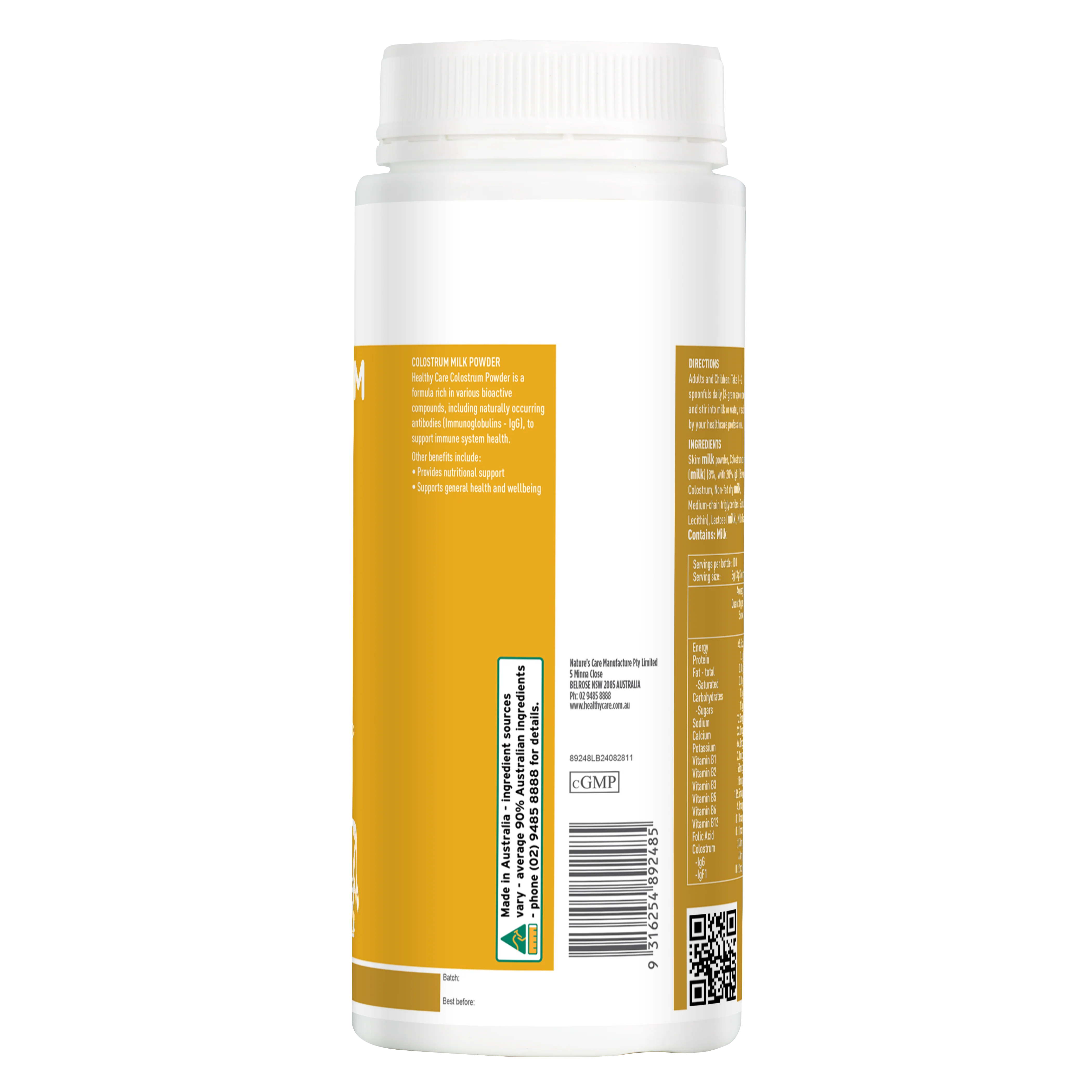 Healthy Care Colostrum Powder is a premium formula made with high-quality bovine colostrum containing 20% Immunoglobulin G (IgG) – the key antibody that supports immune defence. Rich in bioactive compounds, this powder helps maintain immune system function and provides essential nutrients to support general health and wellbeing.