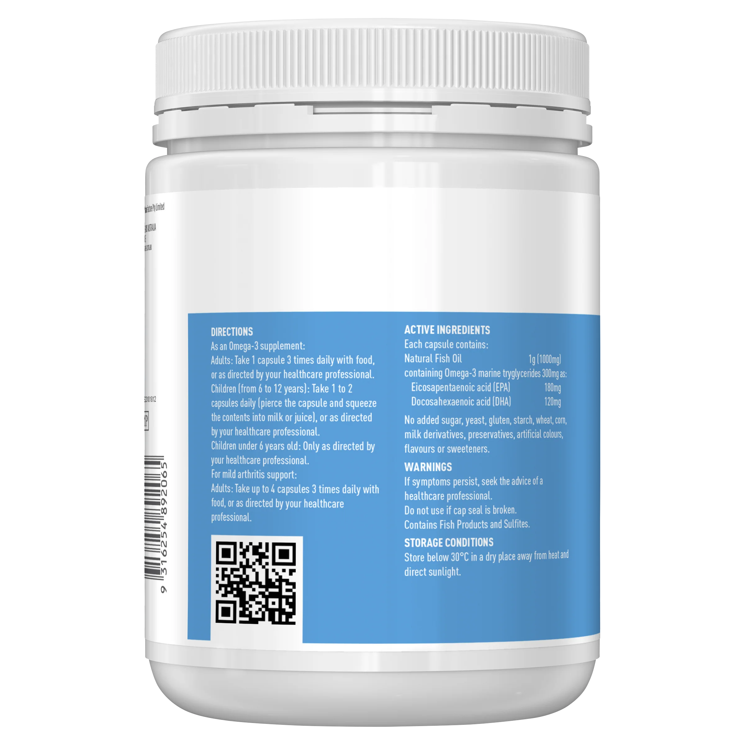 To ensure you can take Healthy Care Fish Oil 1000mg Omega-3 with confidence, we regularly test our fish oil for mercury and only use high quality fish oil, without added artificial surfactants. Fish oil reduces symptoms of mild arthritis.