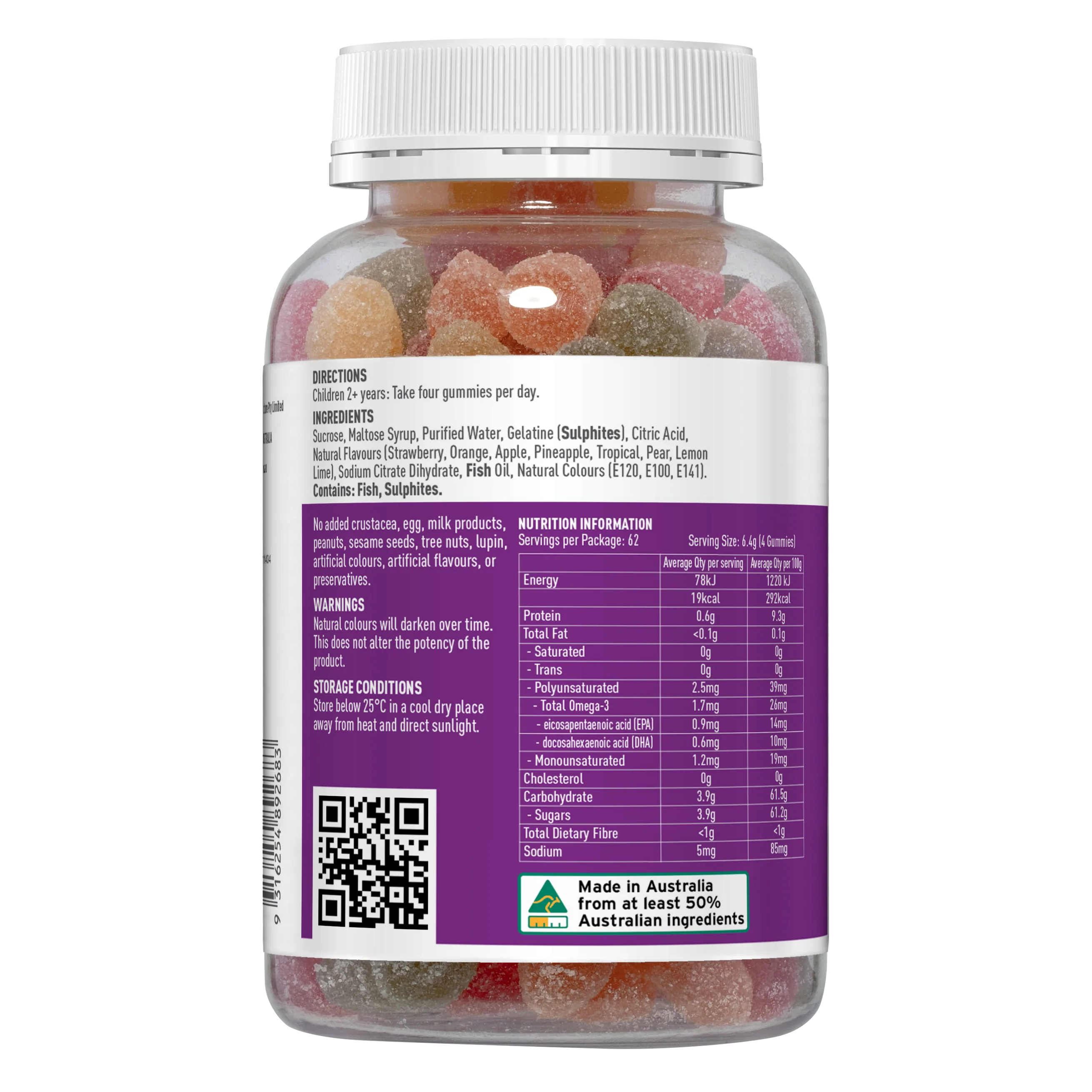 Formulated with natural flavours and colours, these gummies offer a convenient, child-friendly format to support brain, eye, and nervous system health.