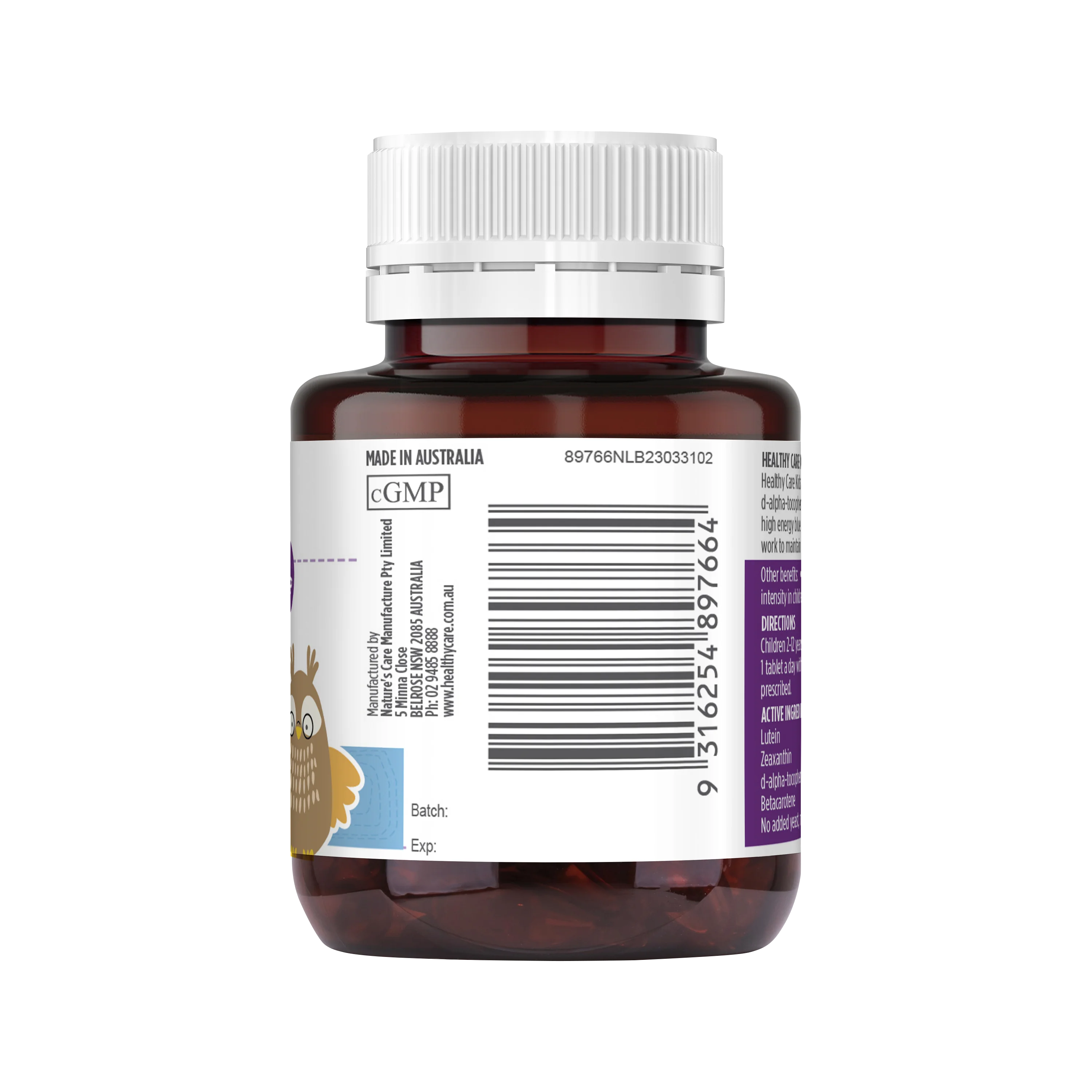 Healthy Care Kids Computer Eyes Chewable Tablet is specially formulated with Lutein, Zeaxanthin, Beta-Carotene, and Vitamin E, which work together to support and maintain children’s eye health in today’s digital world. With increased exposure to high-energy blue light from screens such as computers, tablets, and smartphones, this formula helps reduce digital eye strain and maintain macular health.
