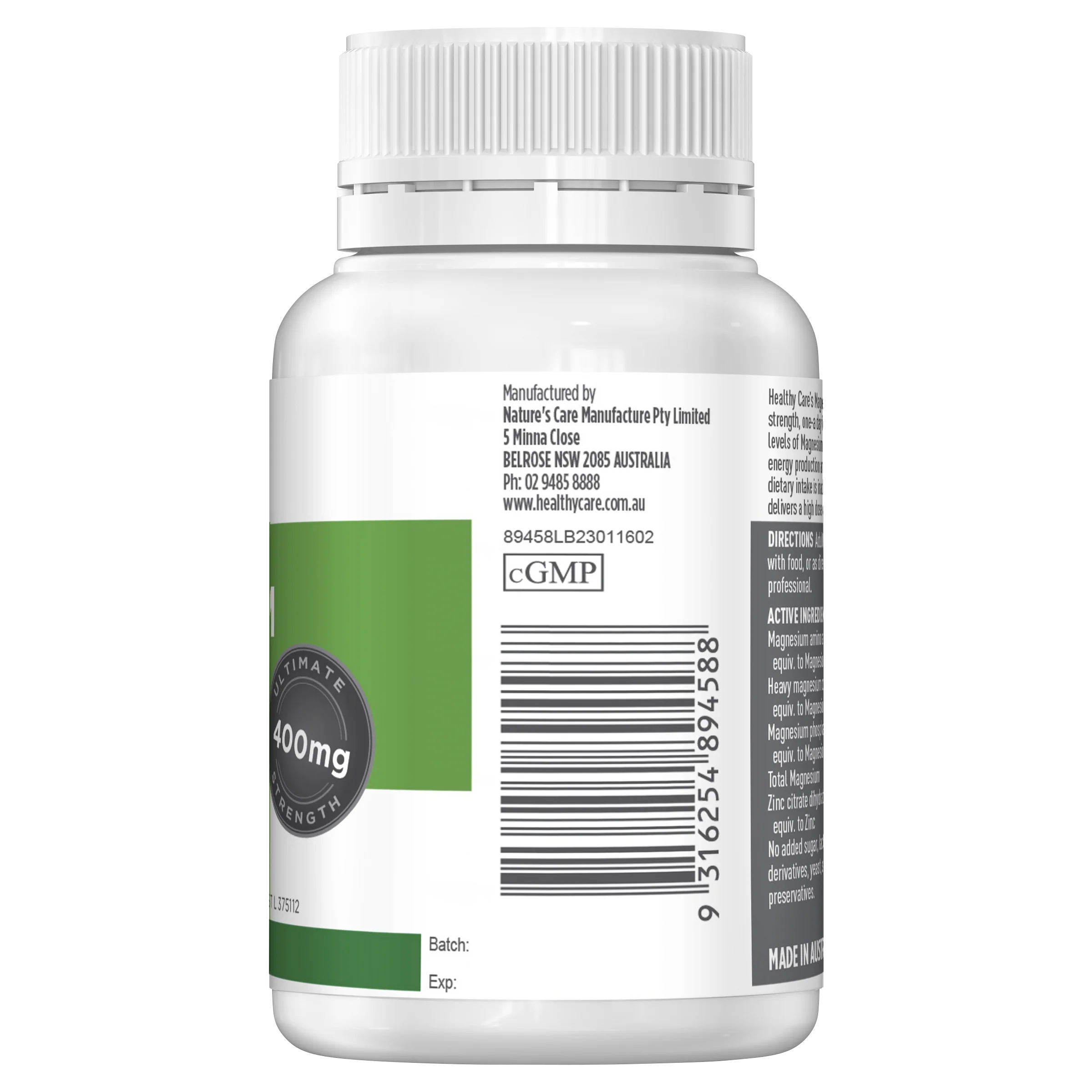 Healthy Care Magnesium Forte 400mg is a high strength, once-daily formula designed to support healthy muscle and nervous system function. Each capsule delivers 400mg of elemental magnesium, helping to enhance energy production and prevent magnesium deficiency when dietary intake is inadequate.