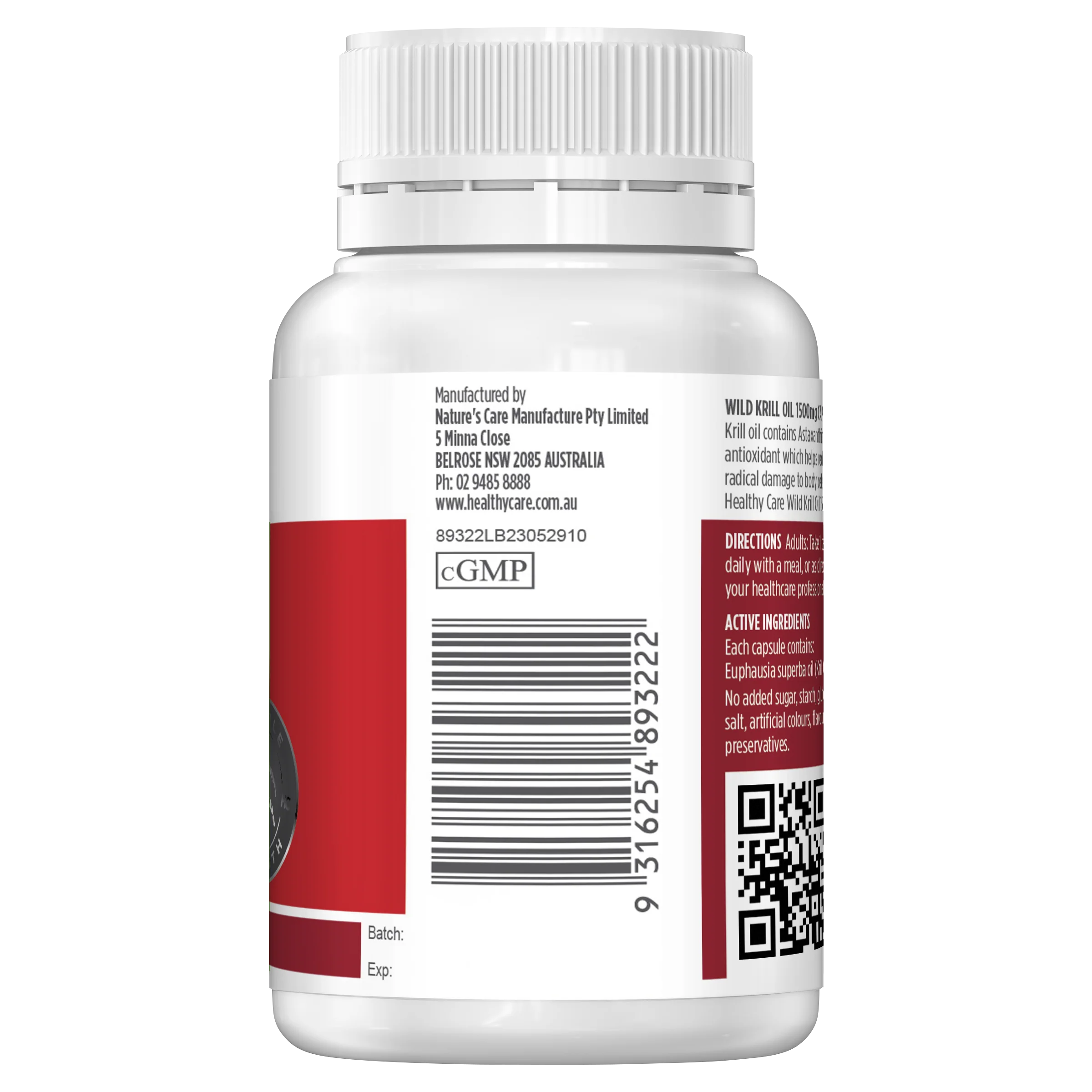 Healthy Care Wild Krill Oil 1500mg provides a potent dose of naturally sourced Krill Oil, rich in Omega-3 fatty acids and Astaxanthin â a powerful antioxidant that helps reduce free radical damage to body cells. This high-strength formula helps support joint, heart, and general health.
